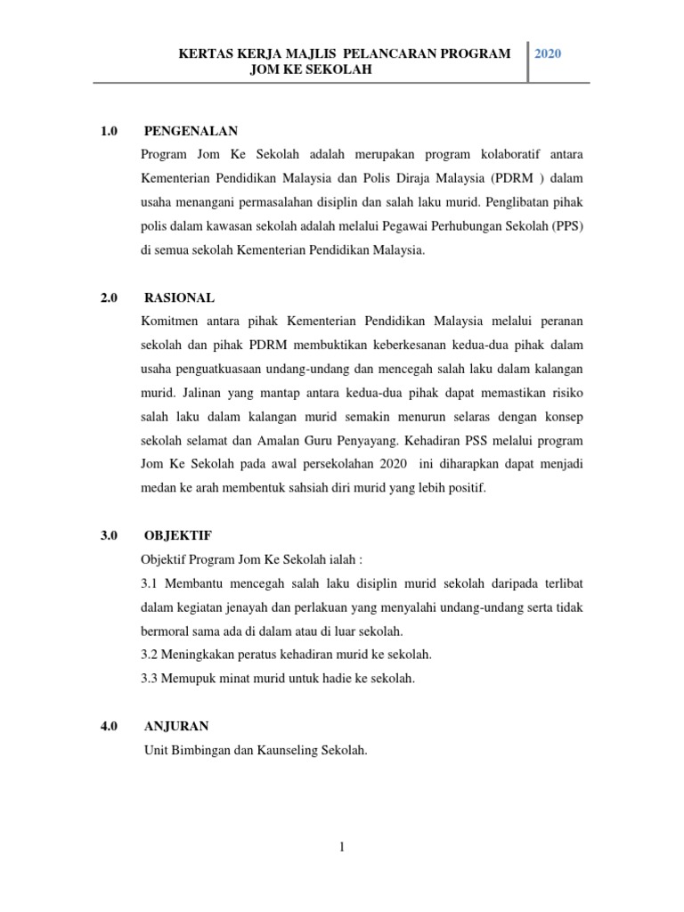 Kertas Kerja Program Jom Ke Sekolah Pdf